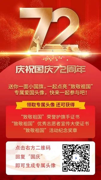 ![]() ![]() 与国同庆,与国同行! 让我们一起,致敬祖国 点亮国庆专属头像